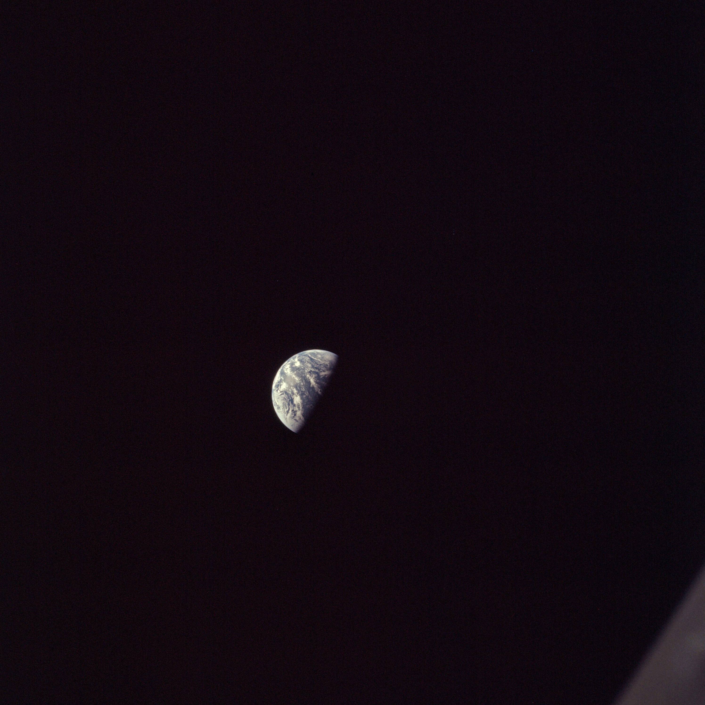 AS08-16-2597 38 kB or 331 kB Earth, at a calculated altitude of 102,500 km (based on photo analysis). No land is visible and it is suspected that the photo shows the Pacific Ocean. Image credit: Image Science and Analysis Laboratory, NASA-Johnson Space Center. |