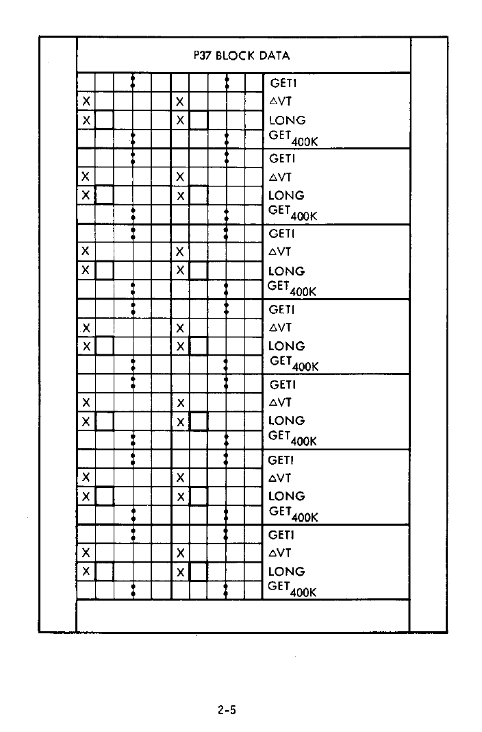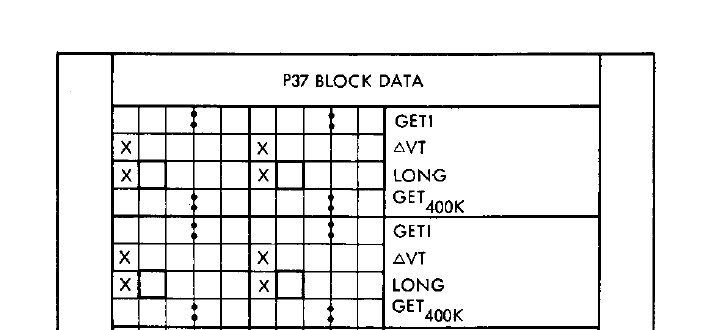 Additionally, Charlie Duke has given details of a P37 PAD for TLI plus 4 hours. The purpose of P37 (program 37) is to compute a return-to-Earth trajectory with the condition that the CSM is outside the lunar sphere of influence at the time of ignition. The program takes the four values from the PAD; the specified time for ignition of the engine, a specified maximum change in velocity (or Delta-V), the longitude of the splashdown and the GET for the start of re-entry. These act as a set of constraints with which it calculates the desired trajectory and the details of the burn to achieve it.