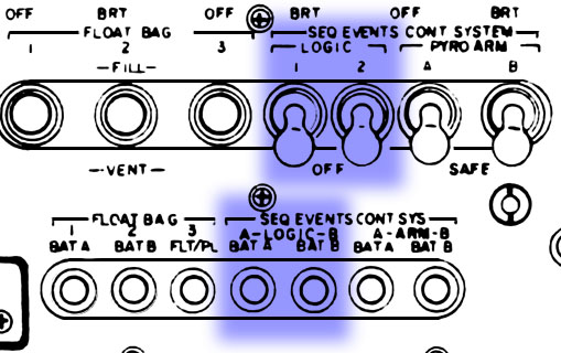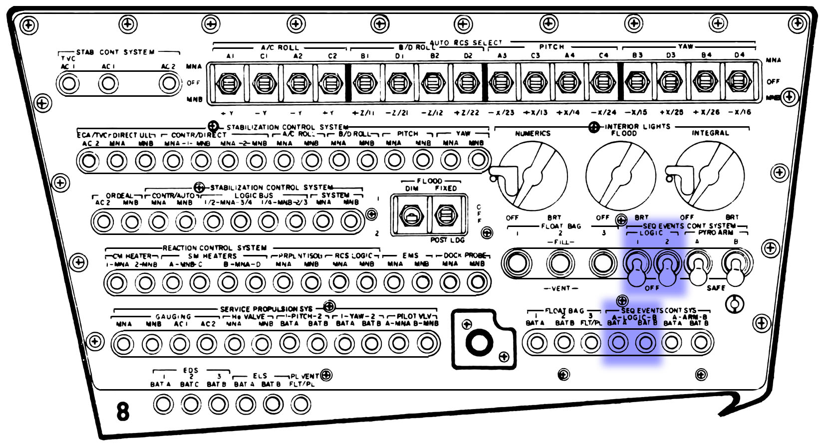 Switches for the Sequential Events Control System (SECS) - CM panel 8