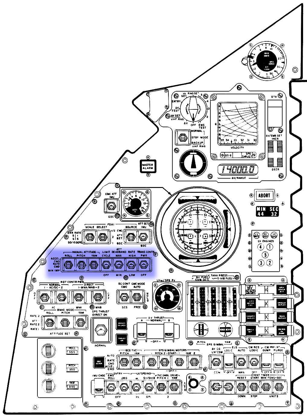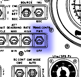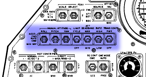 Manual Attitude, Limit Cycle, Att Deadband Rate and Trans Contr Power switches - Panel 1.