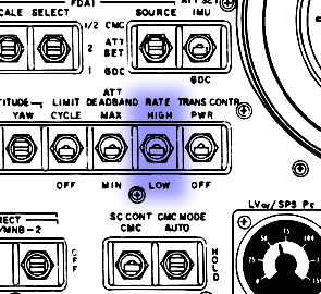 075:47:27 Young (onboard): BMAGs, three, to Rate 2; go. LM/CM, Delta-V CG, no RCS Selects are set.