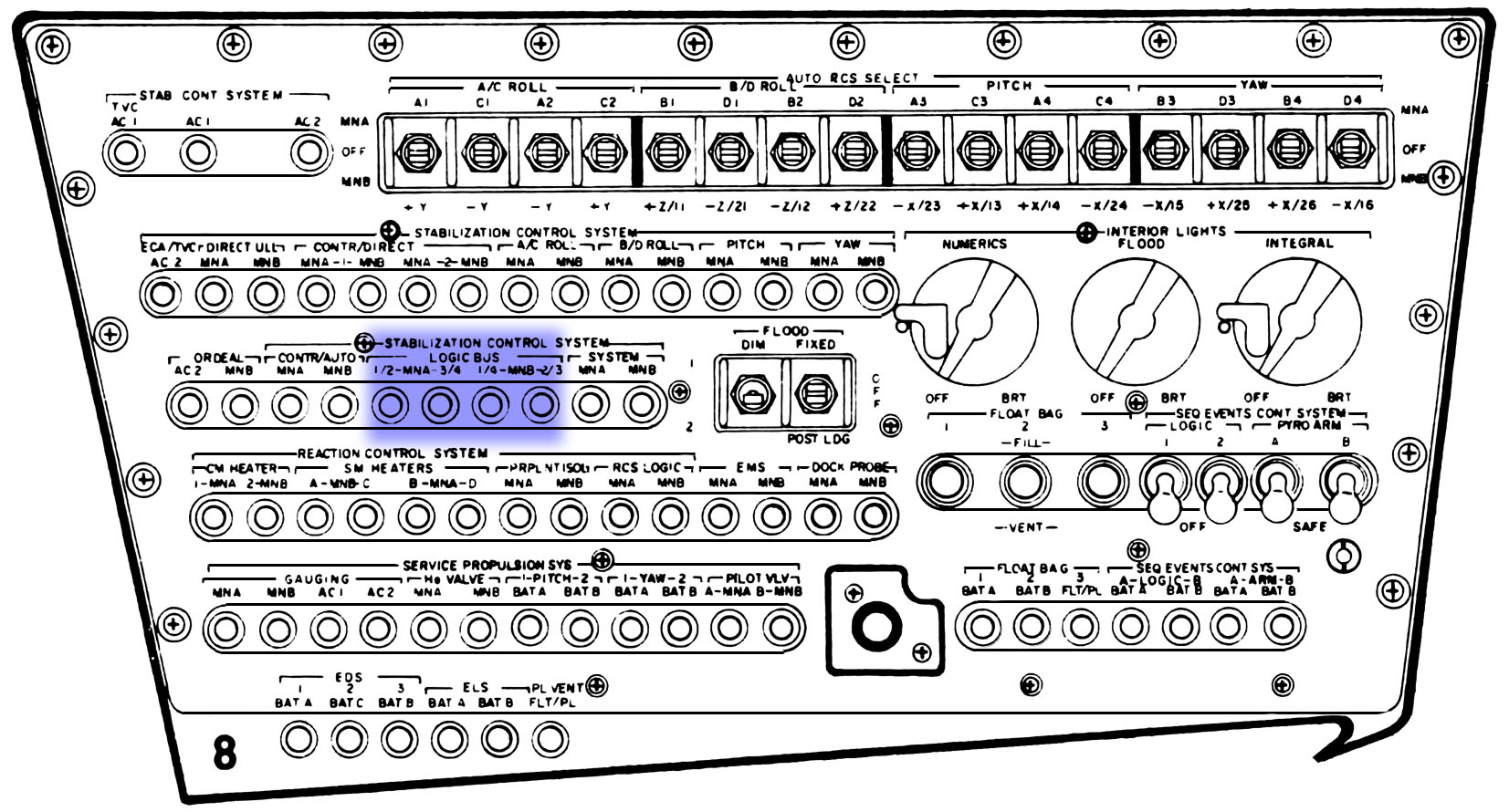 The SCS Logic Bus circuit breakers - Panel 8.