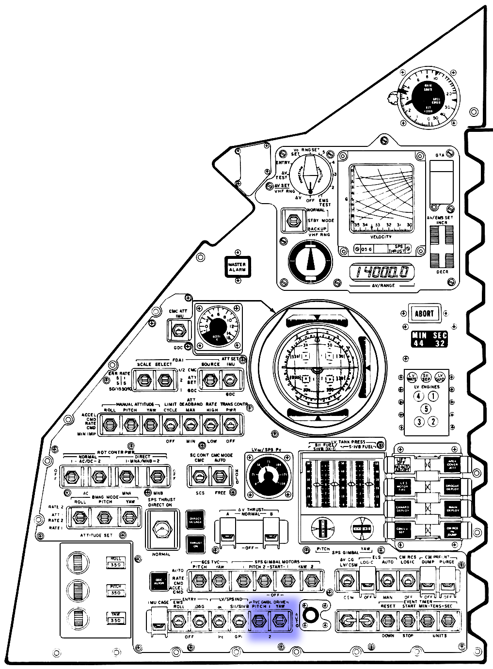 Thrust Vector Control (TVC) Gimbal Drive switches - Panel 1.