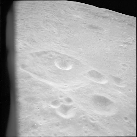 076:29:36 Stafford: Okay. We're just passing from the highlands over into the Mare area, and you can pass on to Jack we caught a couple of real pretty little volcanoes, there's no doubt about them, and we got a couple of good high-resolution photos, and it still looks kind of brownish-gray to us here. Over.