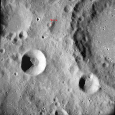 076:43:48 Cernan: Hey, Charlie. You will be glad to know we are walking right up our LM chart, right up our track in the Apollo Ridge, right now. We've just seen the four Taruntius: Papa, Kilo, Hotel and George. We've seen big Taruntius; we're looking at Messier and Messier A; and Secchi K ought to be coming up, and then Secchi.