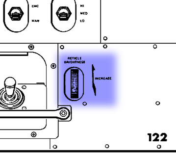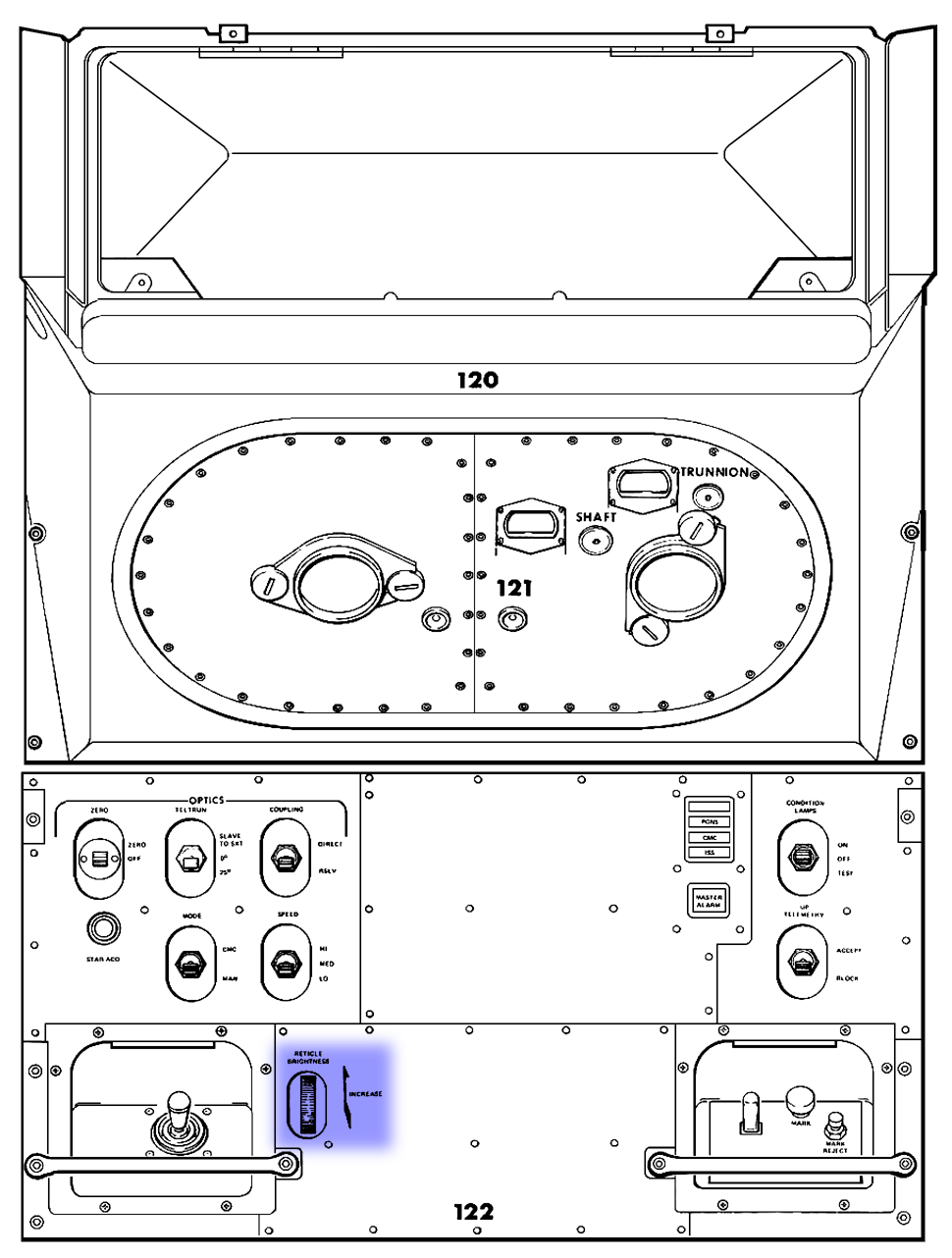 Young, from the 1969 Technical debrief: "The rheostat-dimmer switch on the AOT went from no light to a very, very dim light, most of the time it was not adequate to really mark a star. The problem did not appear to be an electrical problem: it was a physical problem. The rheostat control knob would fall forward physically when you came up from the dim position toward the bright position. When you hit the point about half way between, the knob would just roll forward on its own. So, it was a mechanical problem. In spite of this, actually the alignments went very well. The accuracy of the alignments, the star check, and other aspects were very, very good."