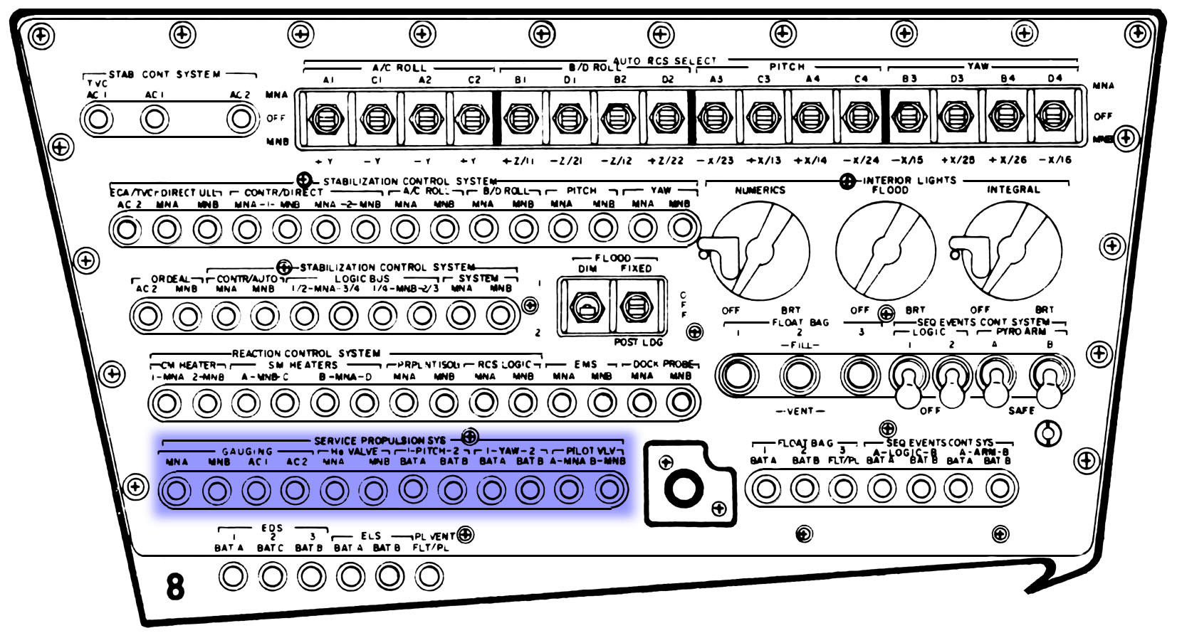 080:12:09 Cernan (onboard): Okay, panel 8; SCS breakers, all Closed.
