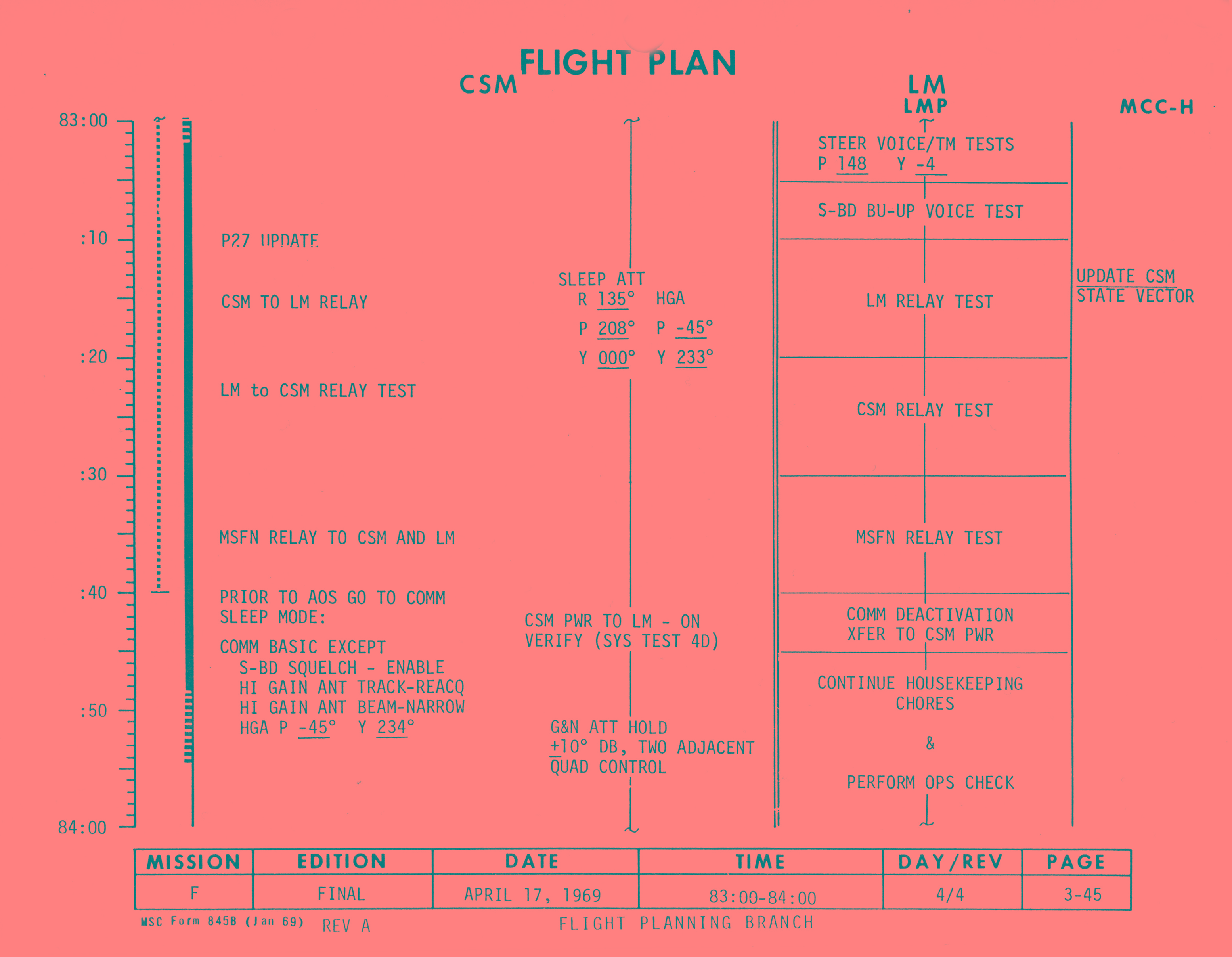 082:47:24 Stafford (onboard): Okay, the next time you're - you're going to be zero at 55 and at 83, you'll be T-2, 83 hours and 50 minutes.