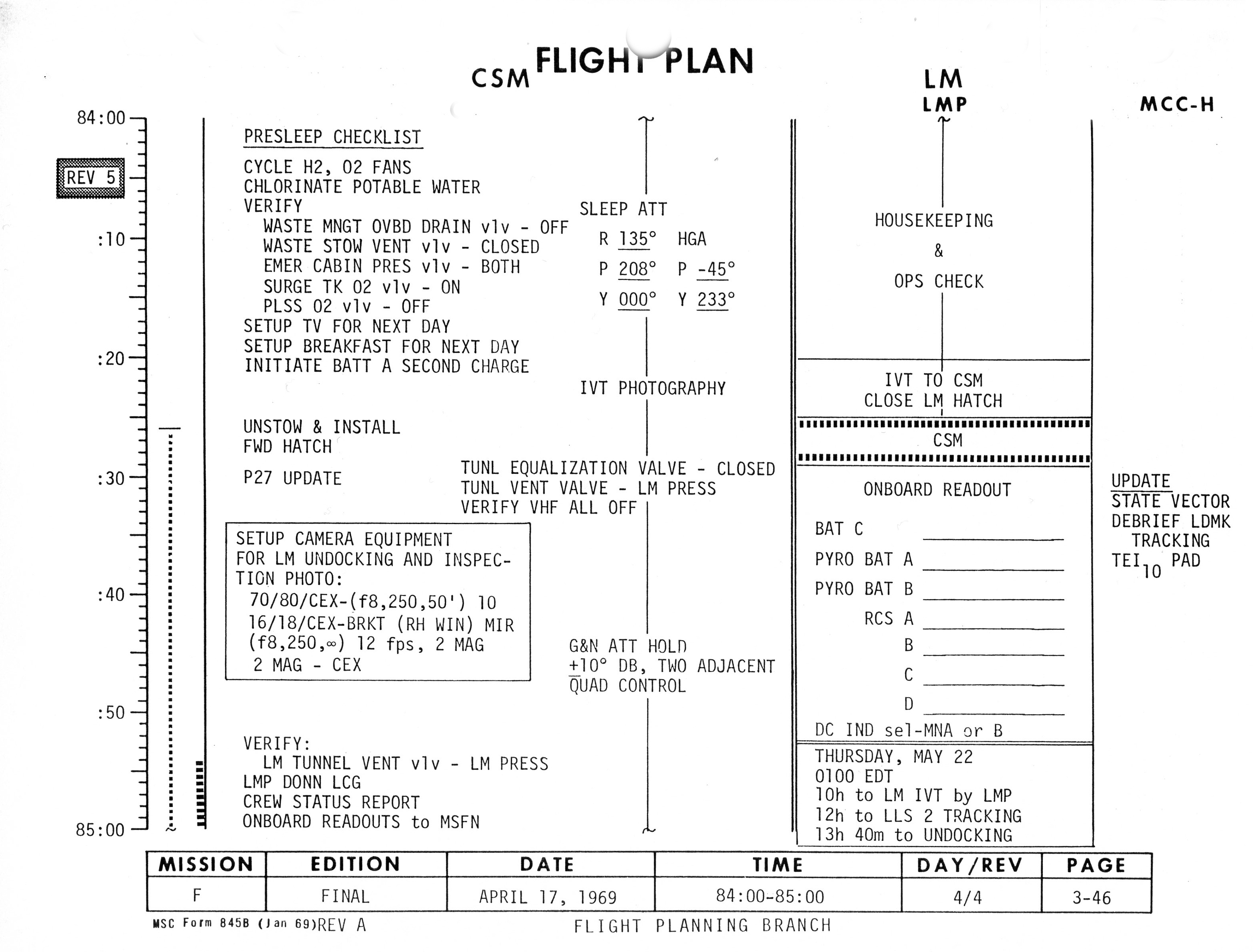086:45:17 Engle: Okay. That configuration ought to do it, John. How's the sleep status going? Are you the only one awake, or have you got everybody awake and running around in there?