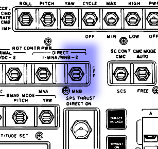 086:44:25 Engle: Okay. Apollo 10, this is Houston. Roger. This configuration will take care of that, although I gave you one wrong thruster, here. Let me - let me go over the ones we'd like disabled or turned off, again. That'll be Charlie 3 instead of Charlie 2. So it's Charlie 3, which is plus pitch; Bravo 4, which is minus yaw; and Bravo 2, which is minus roll. Those three we want disabled, and I have two of them to turn on as soon as you get those.