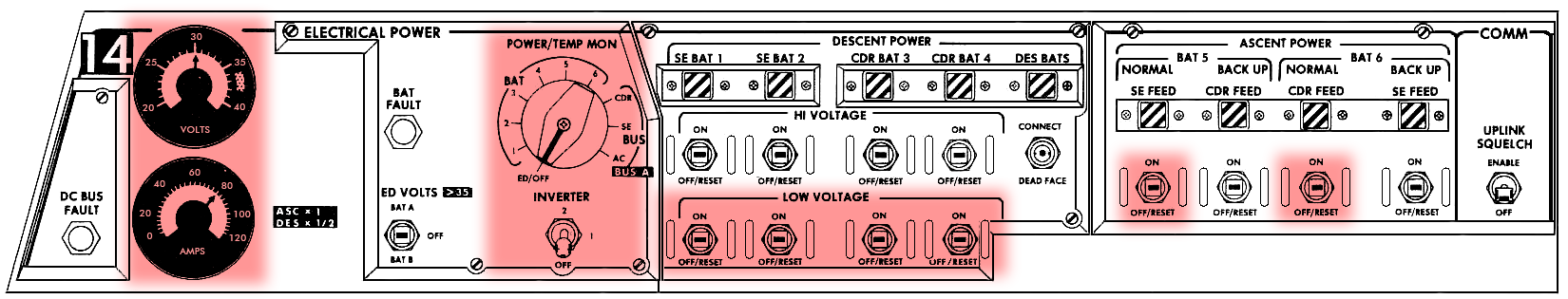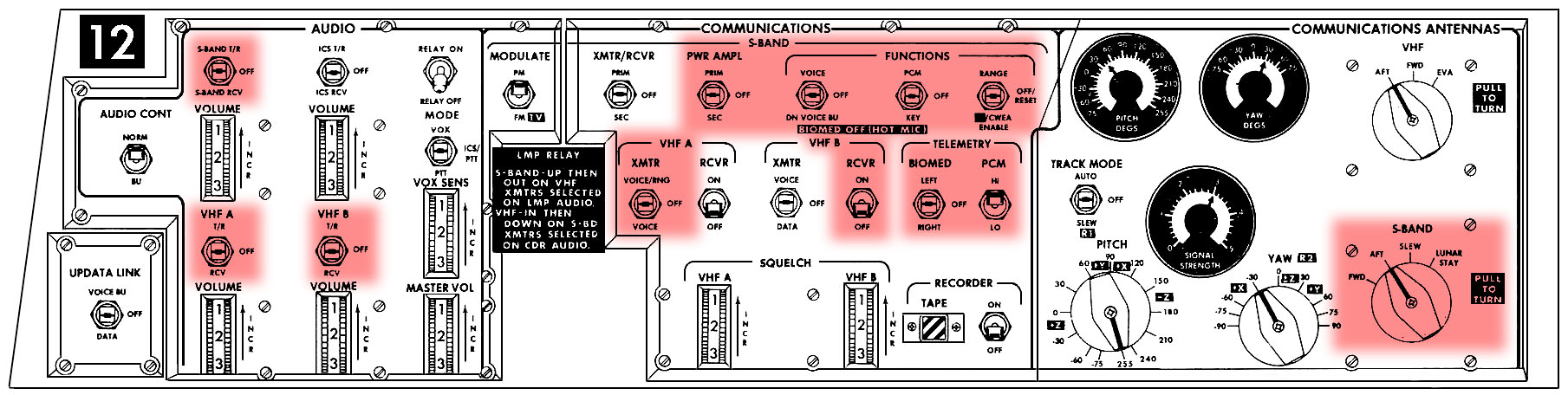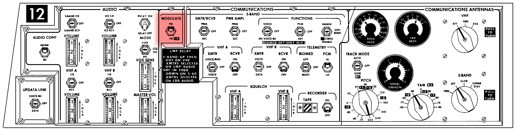 086:43:51 Young: Okay. But now wait a minute. We had to turn off the 4 and B3 because John undid the high gain - because Gene undid the high-gain antenna.(in the LM)