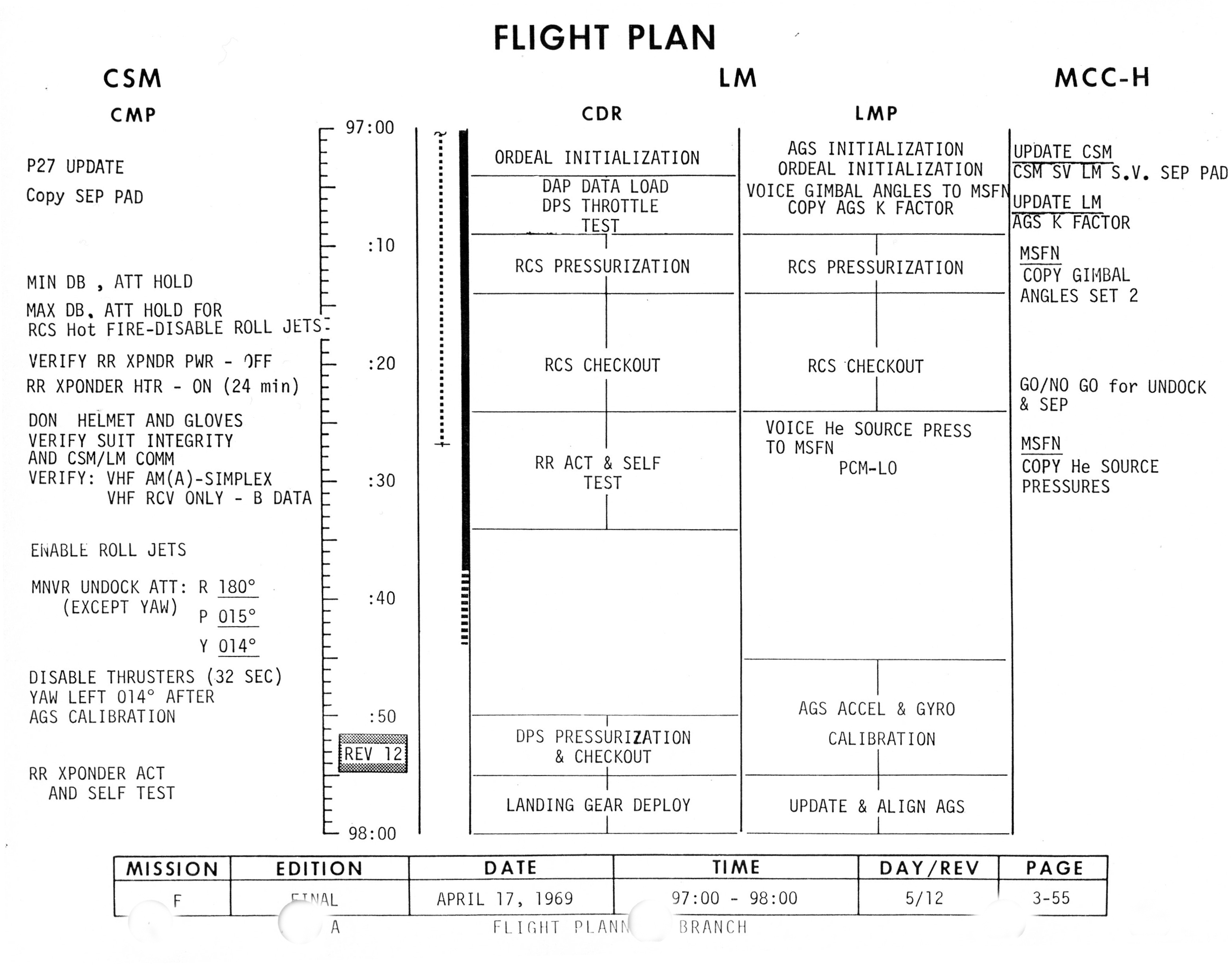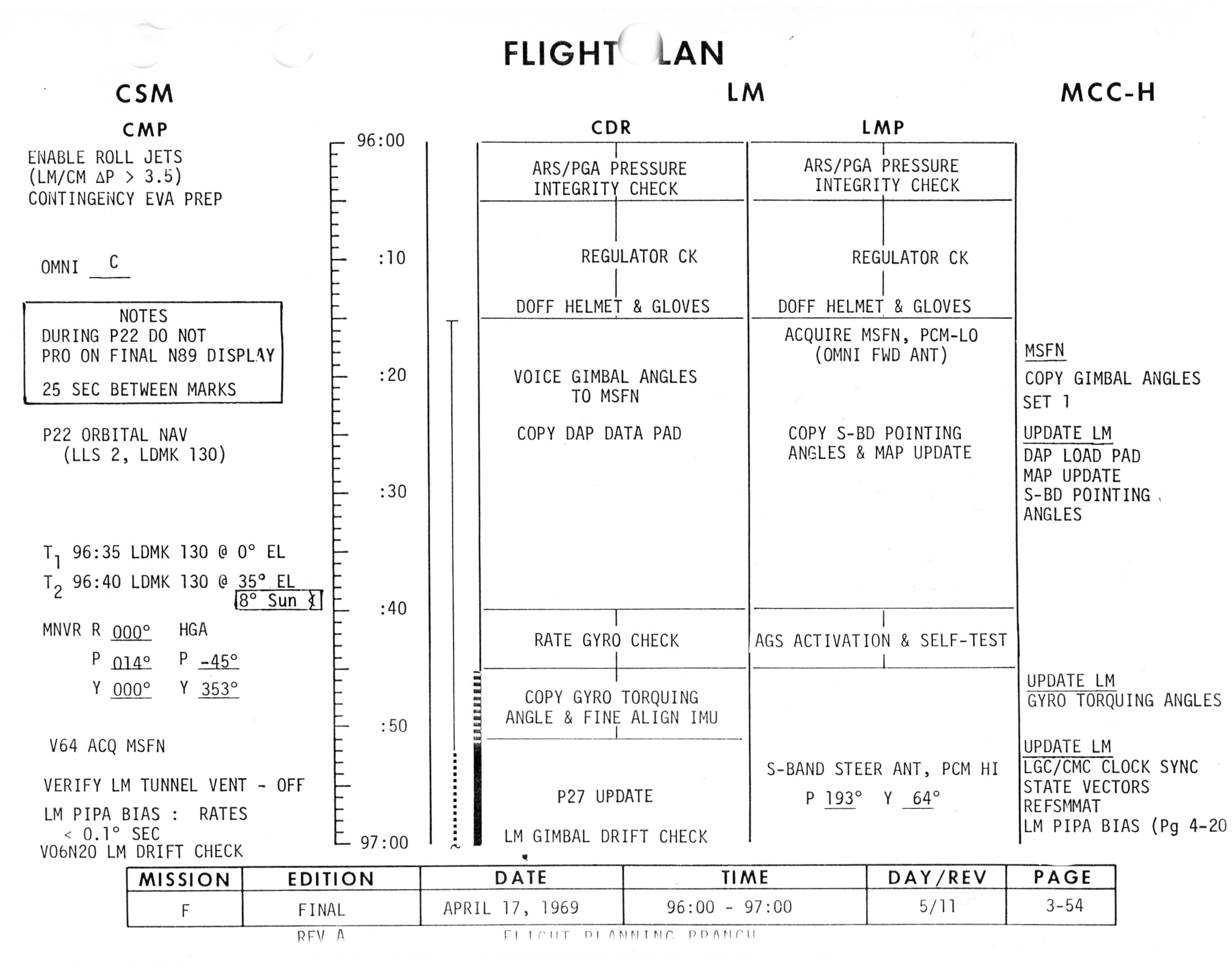 097:54:31 Cernan (onboard Snoopy): I guess we'll just have to wait and see on that one, babe. I don't know. We'll try it again. Let's go through our normal procedures, and if we get lost, we'll go back to VHF Simplex.