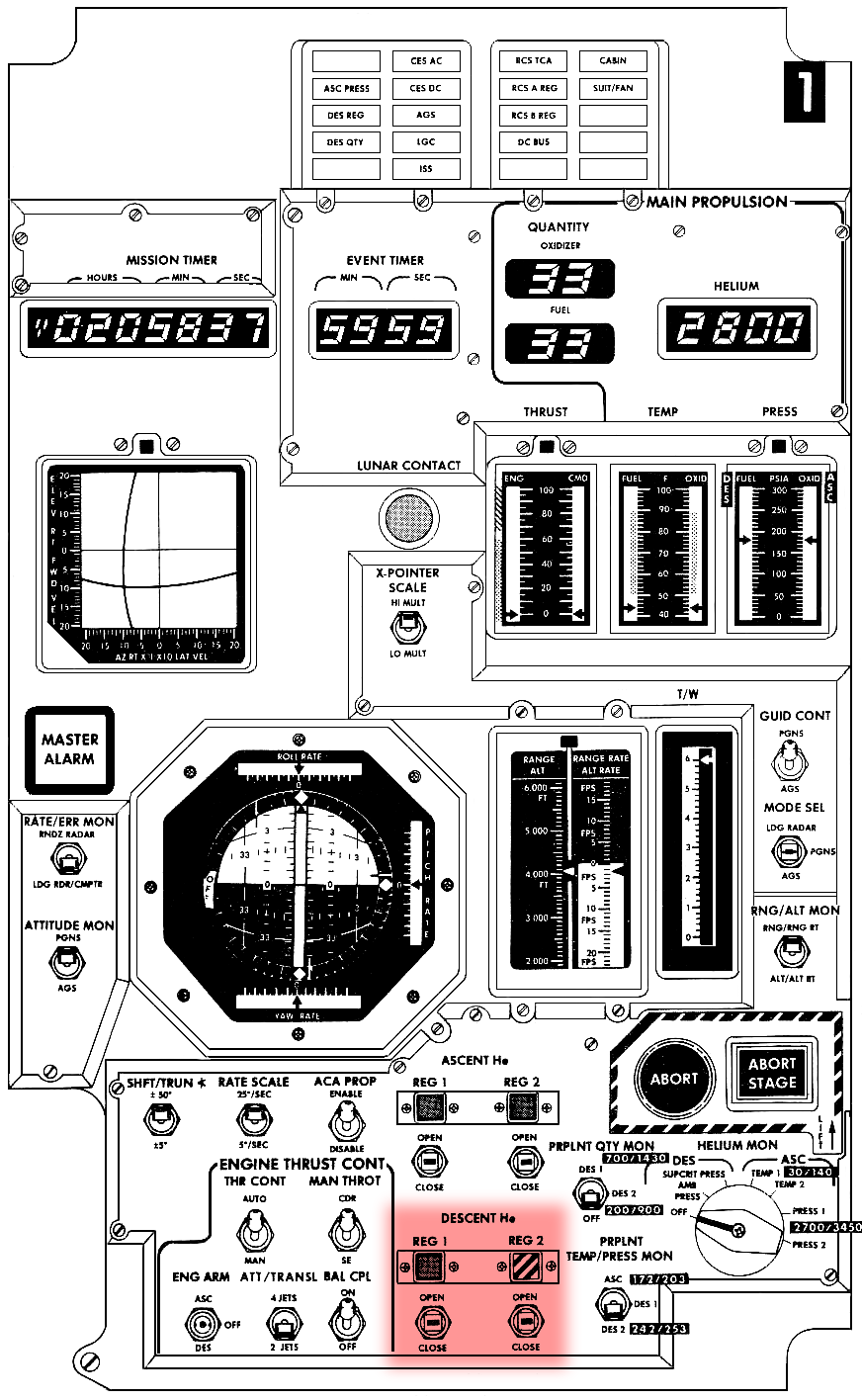 096:02:24 Cernan (onboard Snoopy): Pressure Reg A. Closed.