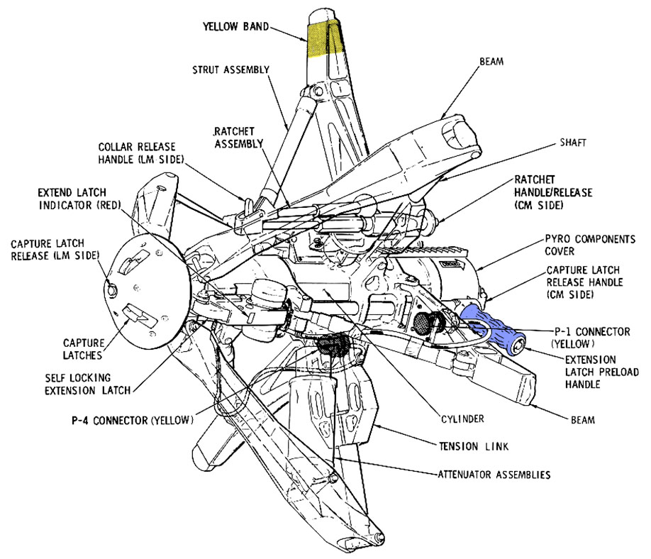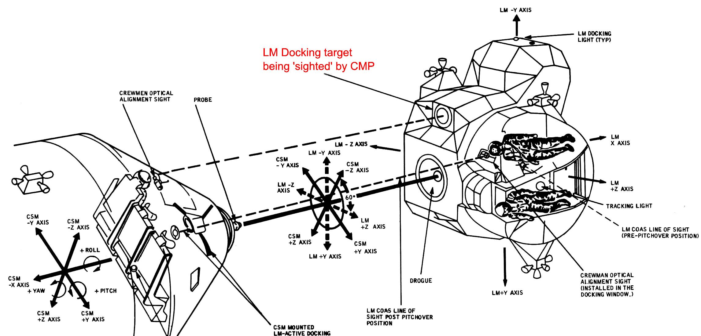 Young, from the 1969 Technical debrief: "We were told not to maneuver to a landmark tracking attitude. We could not vent the tunnel. We were told prior to this time, not to do any roll maneuvers, to deactivate the roll jets, and not to do any roll maneuvers until we vented the tunnel. At this time, we were LOS and we could not vent the tunnel. So nevertheless, the attempt was made to stick with the timeline, and we attempted to maneuver to the roll attitude. Unfortunately, it (the CSM) has been operating in SCS (control) and (we) had neglected to (rate) cage the BMAGs which resulted in oscillations in roll, probably in excess of 1°/sec. I know we were in excess of 1°/sec and this resulted in the slippage of the (docking) ring, and I'd estimate the slippage of the ring to be 6° to 8°."