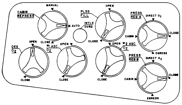 With the Cabin Gas Return valve (on the suit circuit and canisters control module) in the Egress position, the valve is closed, ensuring suit circuit integrity during unpressurized cabin operations.