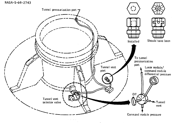 Stafford and Cernan are concerned that the LM docking hatch dump valve is not fully closed or the hatch seals are not sound. If so the LM cabin atmosphere will be leaking into the docking tunnel, maintaining its pressure.