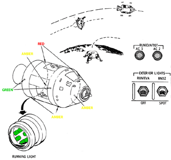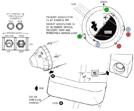 Should a problem be encountered with the CSM, for example with the RCS, the LM can take over the active role for the final docking. Following the rendezvous and station keeping, The commander, viewing through the LM overhead window, using the COAS, would align the two spacecraft using the CSM docking target which the CMP has mounted in the CSM window 4, the right hand rendezvous window. The commander would perform the final closure between the two spacecraft, using the LM controls to complete the docking.
