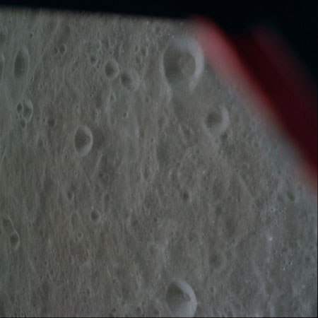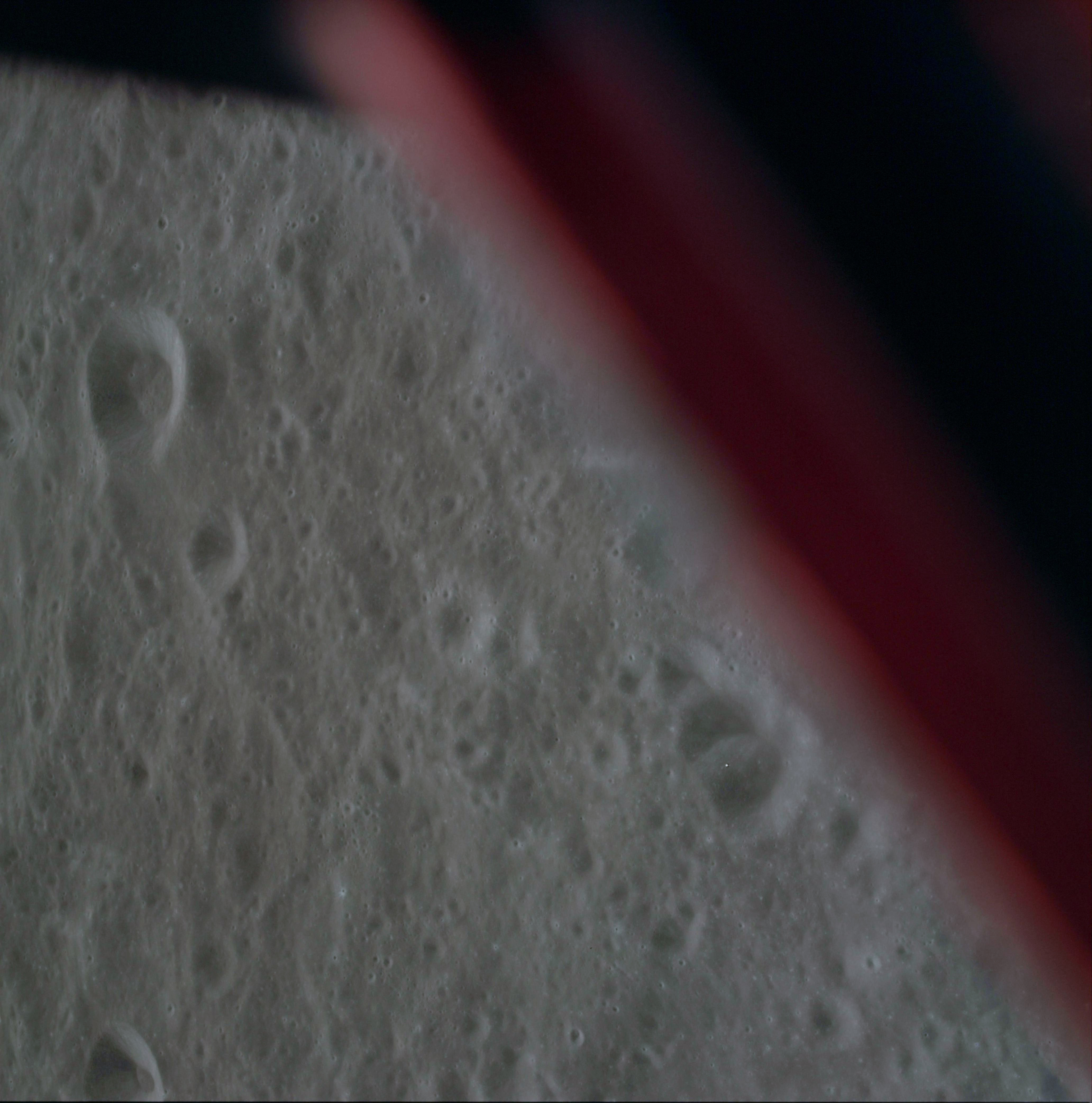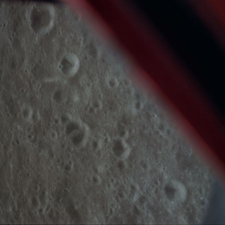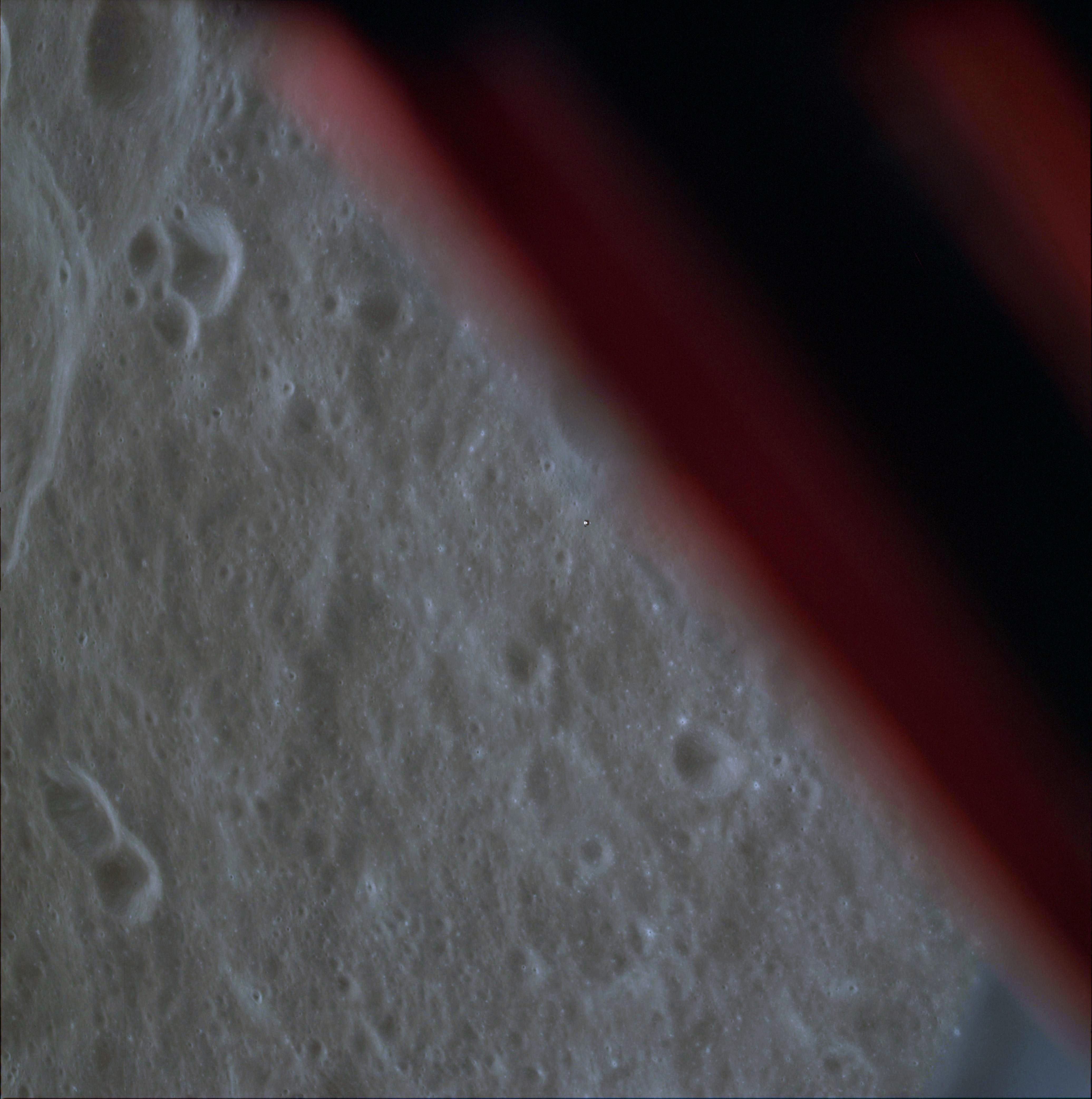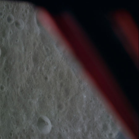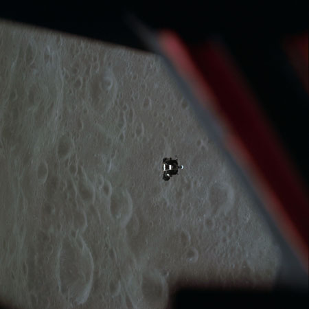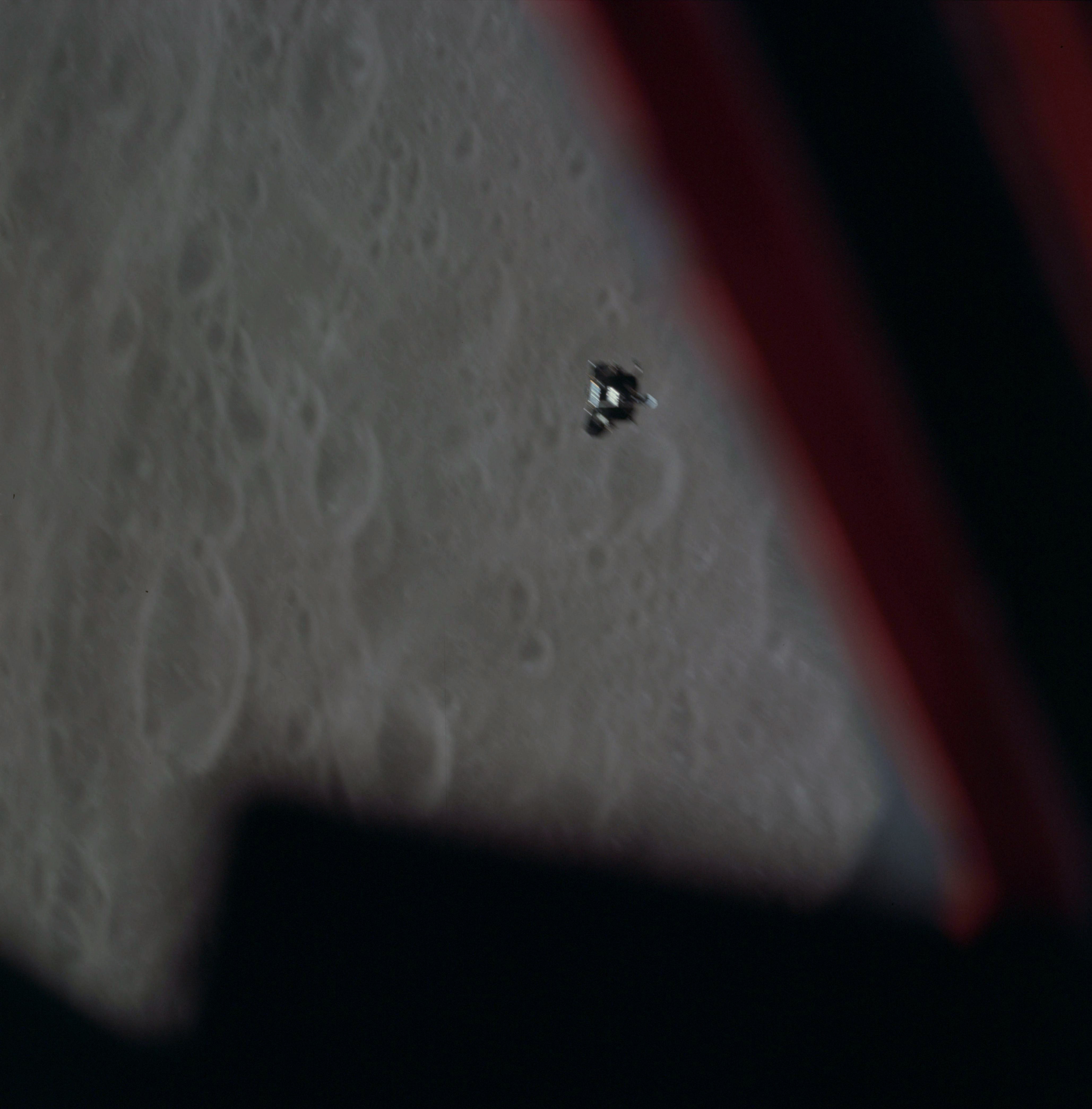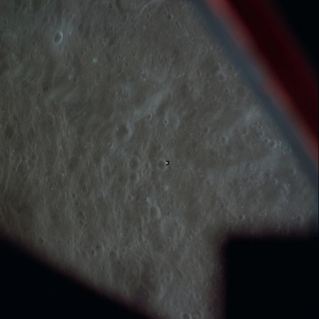 16-mm sequence camera view of the CSM from the LM during the braking phase.