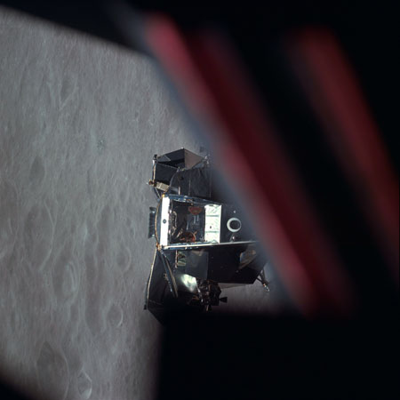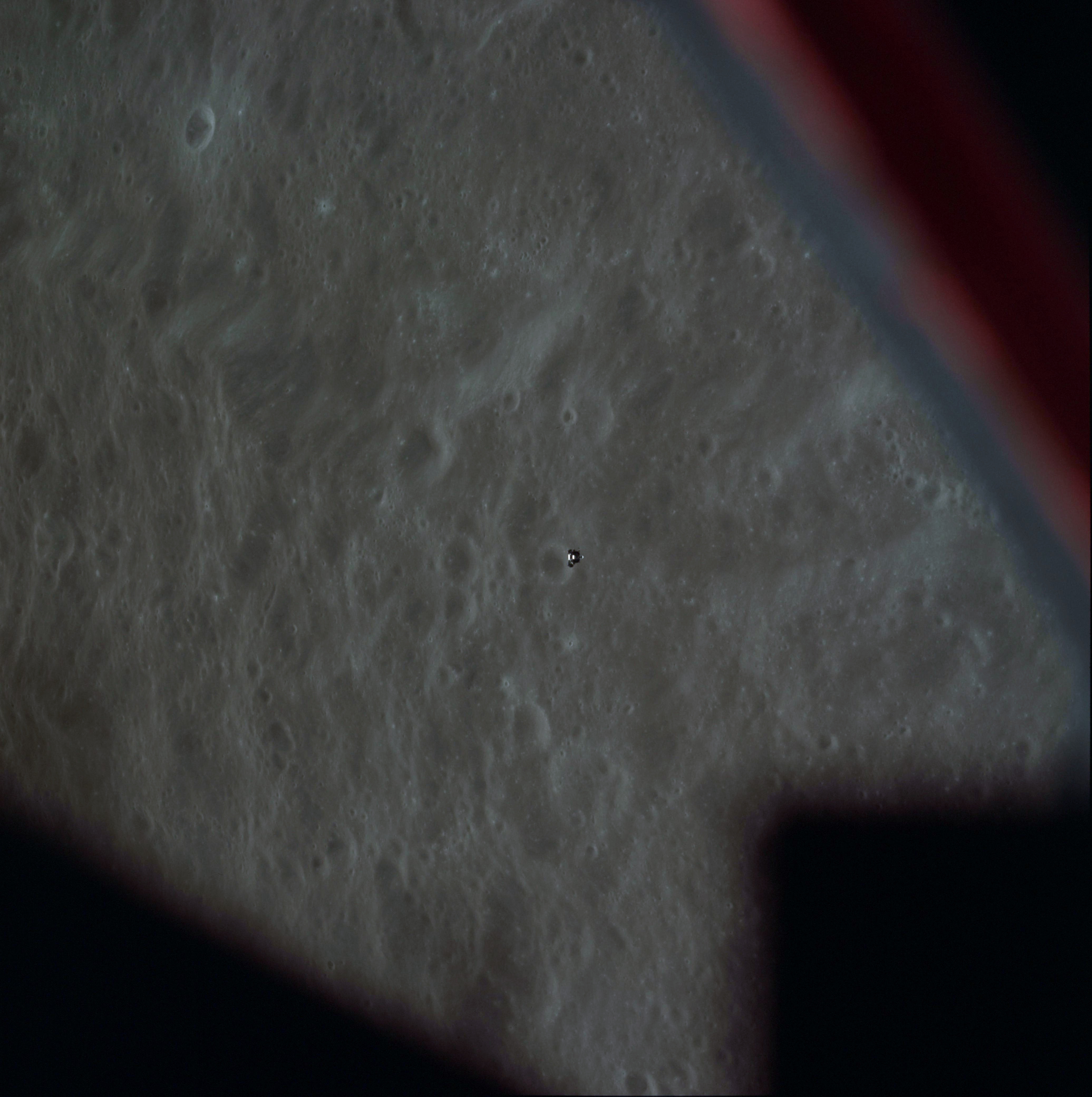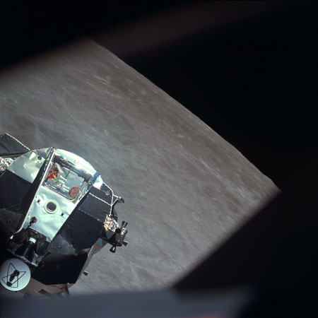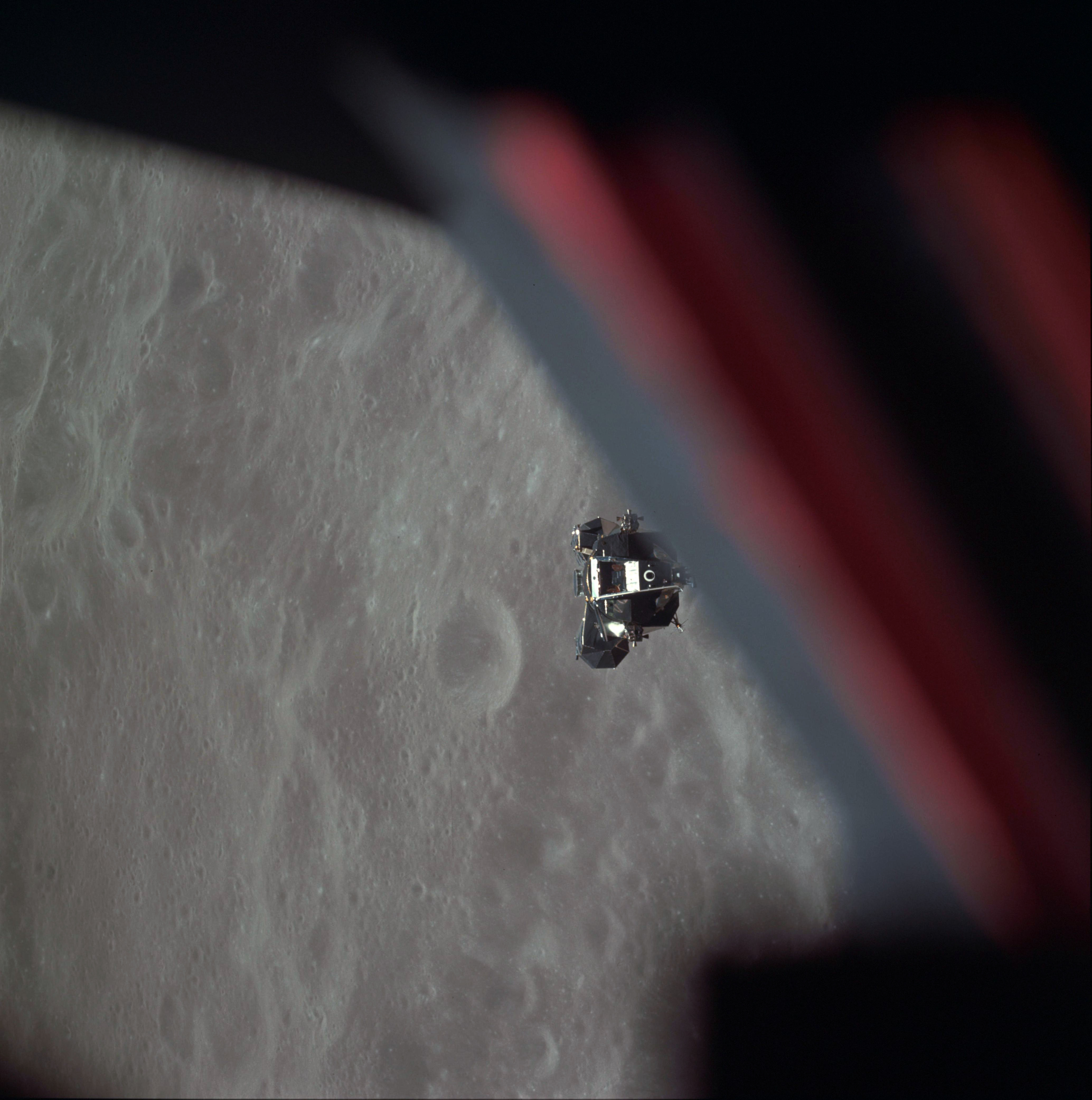 Young, from the 1969 Technical debrief: "The Command Module was maneuvered to X-axis track, and it arrived there with the Lunar Module at about 3.5 miles (6.5 km) in the center of the COAS, between the width of the lines. It was absolutely incredible. It was about 2.5 degrees high, and it continued to drift up a little, just like it's supposed to. It was beautiful all the way."