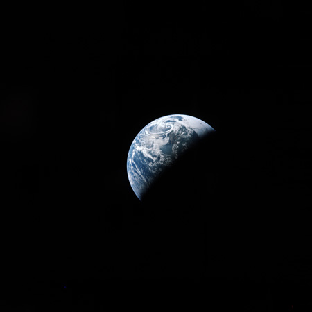 173:36:47 Cernan: Looks like we won't catch you this time, Charlie, but that big low-pressure cloud so very distinctive over the Alaskan area, Aleutian area is very distinctive to us with the naked eye. We can't quite get it for you out the hatch window at this time, as we're going.