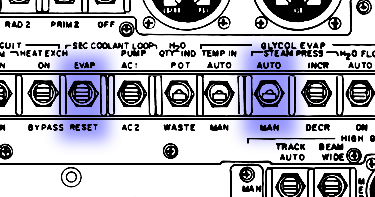 Glycol Evap, Steam Press switch and Sec Coolant Loop, Evap switch - CM panel 2.