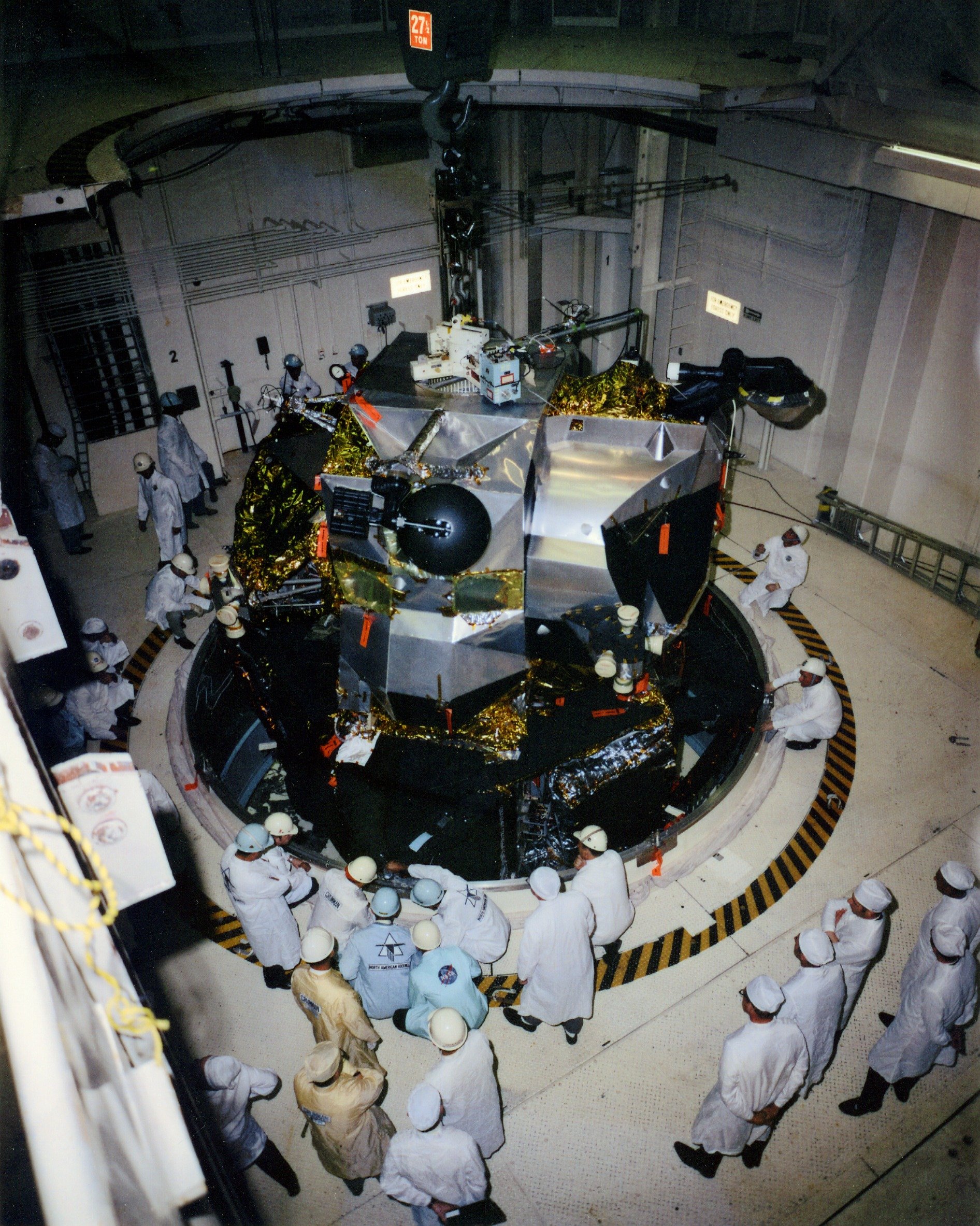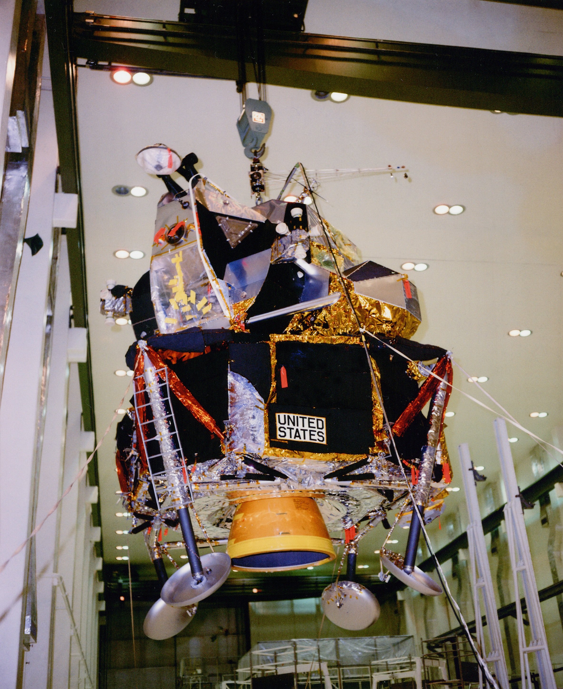 LM 'Snoopy' during pre-stacking processing in the VAB low bay area.