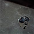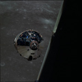 CSM Charlie Brown from LM Snoopy during rendezvous in lunar orbit. Over Webb C, J and M.