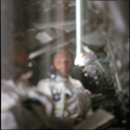 Out of focus view of Tom Stafford and John Young in the CM during the trans Earth coast. 80mm |