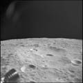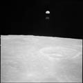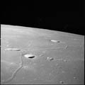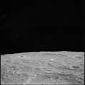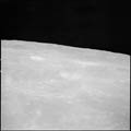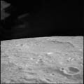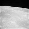 Crater Firsov K, near horizon. 80mm. 112.0° E, 1.5° N. Rev 13. Taken by Eugene Cernan. |