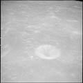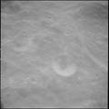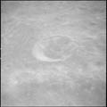 Crater Hartmann, Hartmann K, near target of opportunity 30. 80mm. 136.0° E, 1.5° N. Rev 13. Taken by Eugene Cernan. |