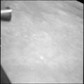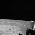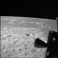 Mare Tranquillitatis. Looking west over 'Last Ridge' just prior to passing over landing site 2. 80mm. 25.0° E, 0.5° N. Rev 13. Taken by Tom Stafford. |