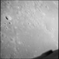 South of Mendeleev, with Mendeleev P in foreground, near target of opportunity 30. 80mm. 138.1° E, 2.2° N. Rev 13. Taken by Eugene Cernan. |