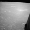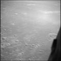Oblique view of Mare Tranquillitatis. Looking west on the final approach to landing site 2. 80mm. 24.7° E, 0.5° N. Rev 13. Taken by Tom Stafford. |