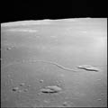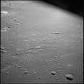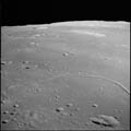 Target of opportunity 78a. Looking south west towards the feature near the horizon, nicknamed 'Lost Basin' by the Apollo 10 crew and Censorinus T. 80mm. 37.0° E, 0.2° N. Rev 13. Taken by Tom Stafford. |