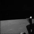 Distant view of the CSM 'Charlie Brown' following separation, over western Mare Tranquillitatis. 80mm. 28.7° E, 1.0° N. Rev 12. Taken by Tom Stafford. |