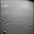 Mare Tranquillitatis. Looking west, to the south of landing site 2. 80mm. 23.9° E, 0.2° N. Rev 13. Taken by Tom Stafford. |