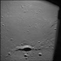South of Mendeleev, showing Schuster Q, near target of opportunity 30. 80mm. 142.2° E, 1.2° N. Rev 13. Taken by Eugene Cernan. |
