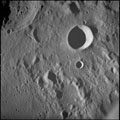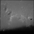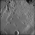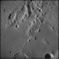 Northern rim of Schuster, Schuster Y, and floor of Mendeleev. 146.2° E, 6.1° N. 250-mm lens. |