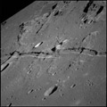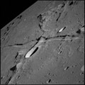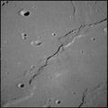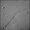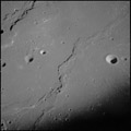 Maskelyne X, Sidewinder Rille, and Faye Ridge. 80mm. 27.2° E, 0.4° N. |