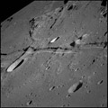 Rima Ariadaeus, Ariadaeus, Ariadaeus B, and Siberschiag A. Target of opportunity 123. 15.8° E, 5.7° N. 250-mm lens. |