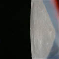 AS10-35-5246 Eastern limb of the Moon, taken after TEI burn. Mare Crisium, Serentatis, Tranquillitatis, Nectaris, Fecunditatis. |