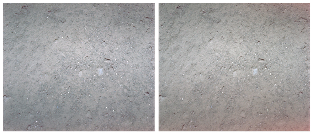 AS11-45-6705 Browse or print resolution. Stereo image of lunar surface. The larger object is about 13 mm across and has been splashed with molten material that has frozen to a glassy finish. Approx field of view is 72 mm by 83 mm. Image credit: NASA/JSC/ASU |