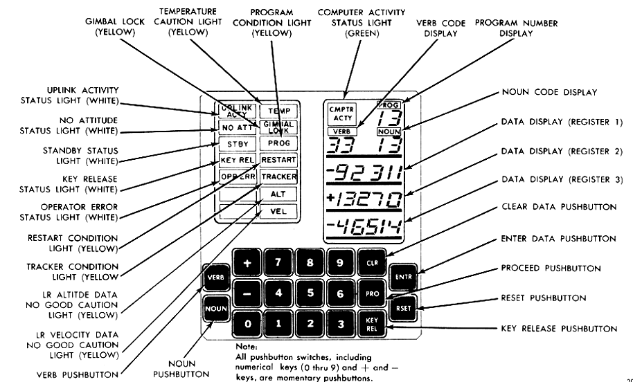 070:55:52 Haise: Okay. Joe. As I read that, at 74 hours we're going to do an AOT Sun check at detent 2, which is going to require the Rendezvous Radar out of the way. And we use P52 Auto maneuver to get there, or at least the angles out of that, and if this passes within 1 degree, you're saying the platform is okay for the maneuver, and we won't need a subsequent P52. But even if it is okay, you'll give us a star which we can use for our check when we're in darkness. If this check flunks, you'll pass us on up then an Earth/Moon align procedure.