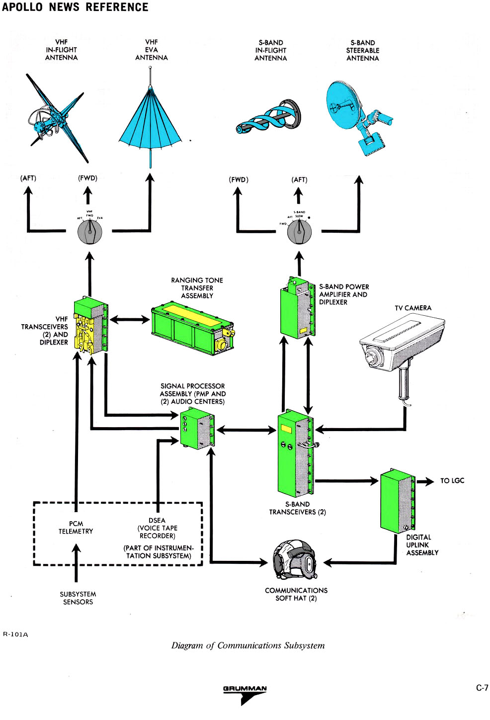 Lunar Module telecommunications system flow diagram from the LM News Reference. Notice the Grumman logo on the bottom!