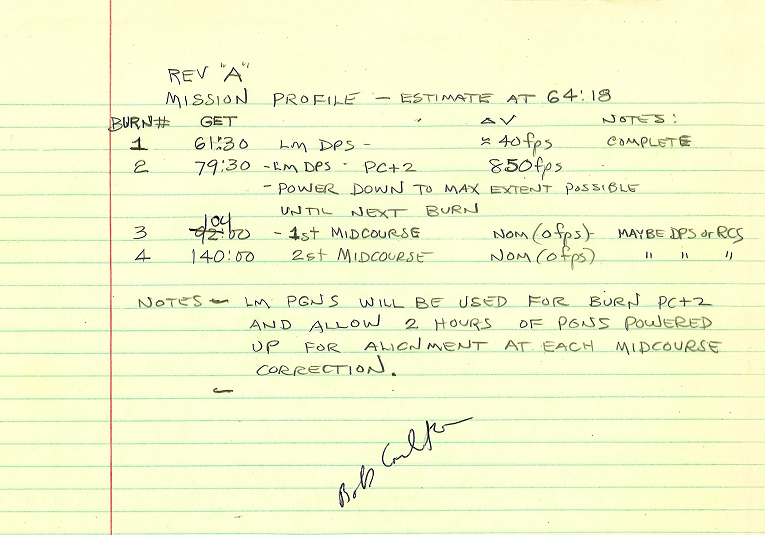 069:24:23 Kerwin: Okay. Our estimate is that we will start powering up for the DPS burn at about 76 hours elapsed, which is about 6¾ hours from now.