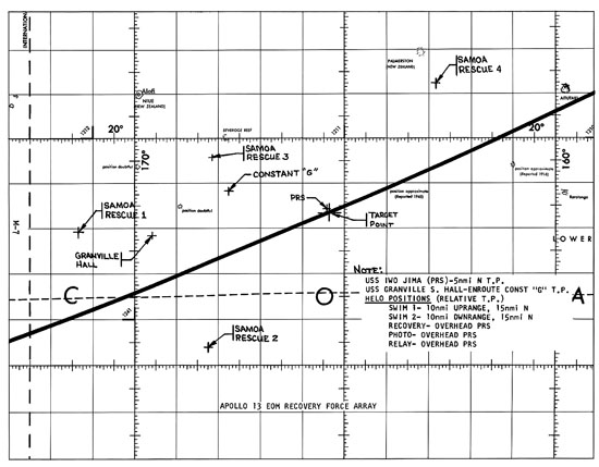 Apollo Control, Houston; we're 140 hours, 18 minutes now into the flight. That last report from spacecraft commander Jim Lovell reporting that Fred Haise, now in the Command Module, helping Jack Swigert power up the systems. The nominal timeline called for Lovell and Haise is to transfer into the Lunar Module at about minus 1 hour, 30 minutes from time of Entry Interface. So Lunar Module Pilot Haise has stepped ahead slightly in that timeline. We now show that we're 1 hour, 22 minutes away from time of jettison of the Lunar Module. With 140 hours, 19 minutes into the flight; this is Apollo Control, Houston.