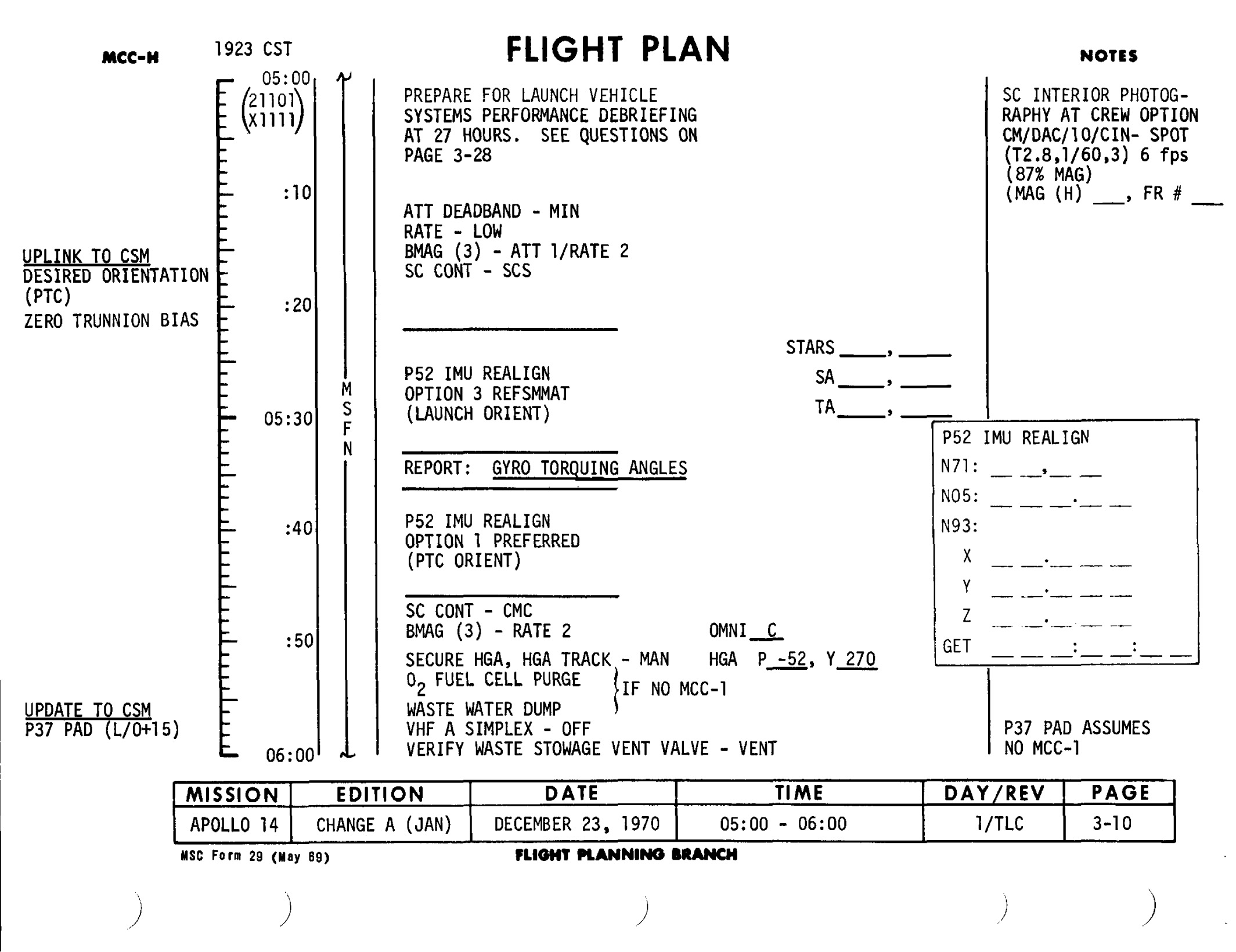 006:10:04 Fullerton: Roger, Stu. That's affirmative. We'd like you to go through with the normal procedures as shown in the Flight Plan down to that P52 at 5 hours and 40 minutes, but at that point we're going to deviate slightly in order to save some RCS. We would - do not want you to do the fuel cell purge or the waste water dump. We're planning to have you - or - or - and we do not want you to do the - go into PTC. At that point we're planning to do the P23 which will be a little early, and we'll have a new attitude for that. And then we'll go into PTC. Right now it looks like midcourse 1 is not likely to be necessary, so that we'll save one PTC spinup. That way we'll save some RCS. Over. [Long pause]