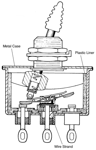 Cutaway diagram of Delta-V Thrust switch showing contamination