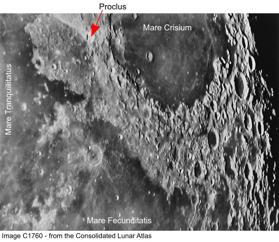 Image C1760 from the Consolidated Lunar Atlas showing Earth-based view of Proclus and its immediate surroundings.