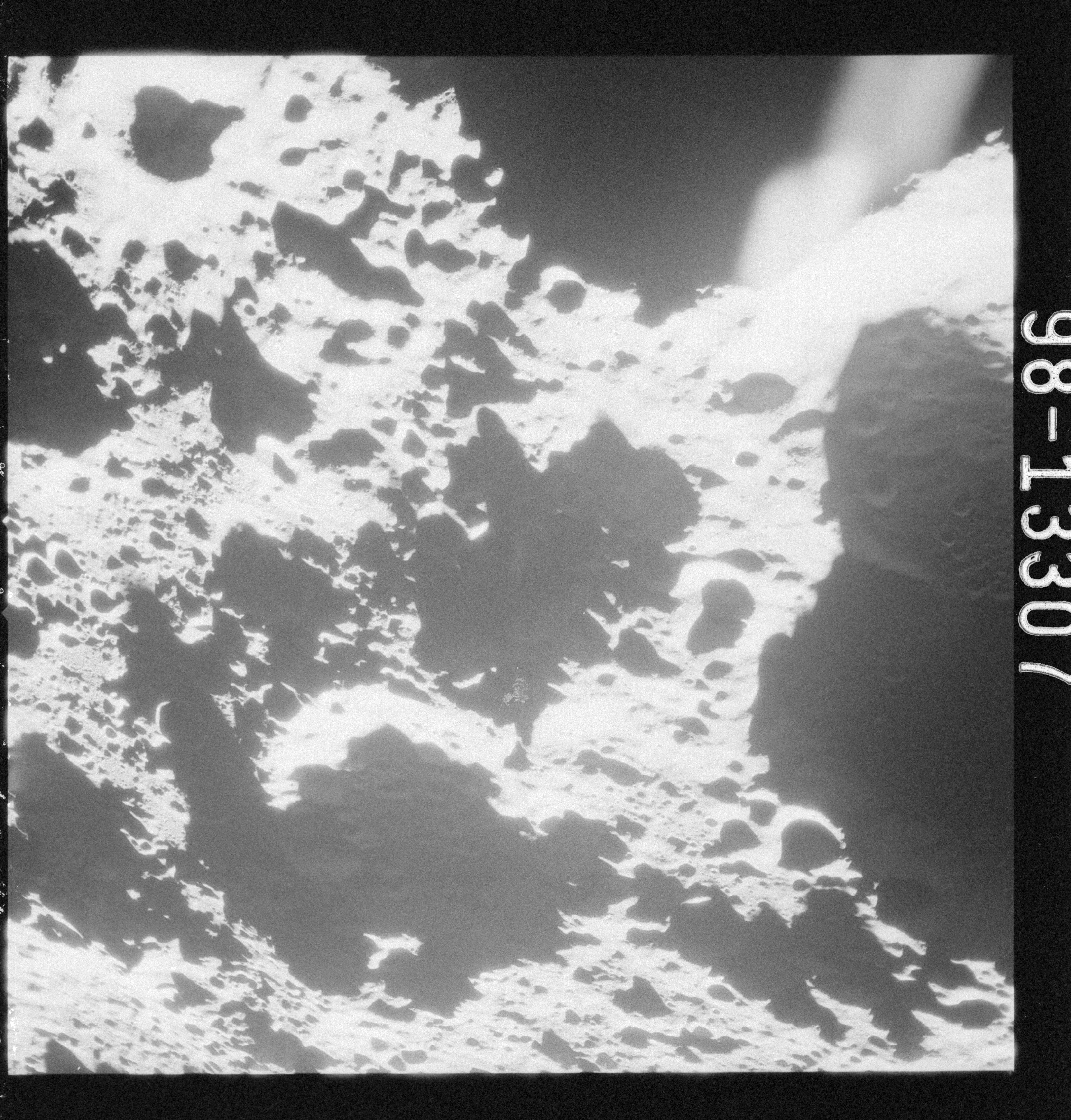 085:39:05 Irwin: And, Karl, speaking of shadows, there seems to be enough light being reflected off the sides of the mountains around to supply some light down on the landing site. And the rille is quite distinctive as we pass right over it.